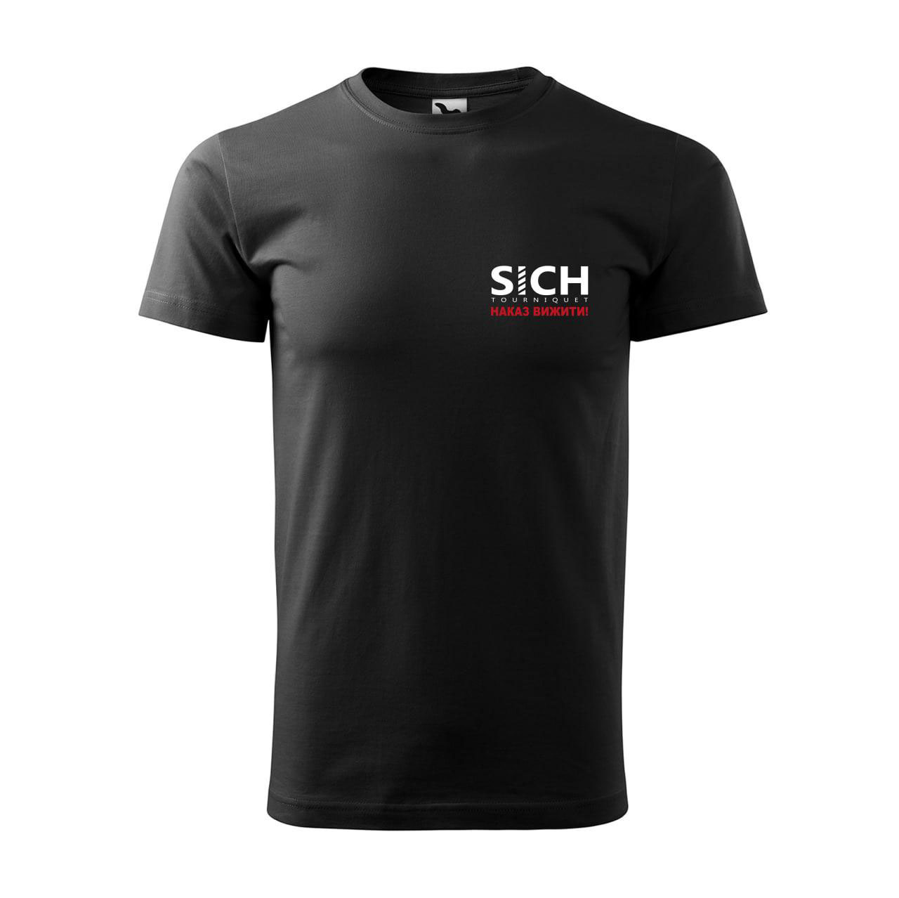 Men’s T-shirt featuring a print of the components of the SICH-Tourniquet and the SICH logo.